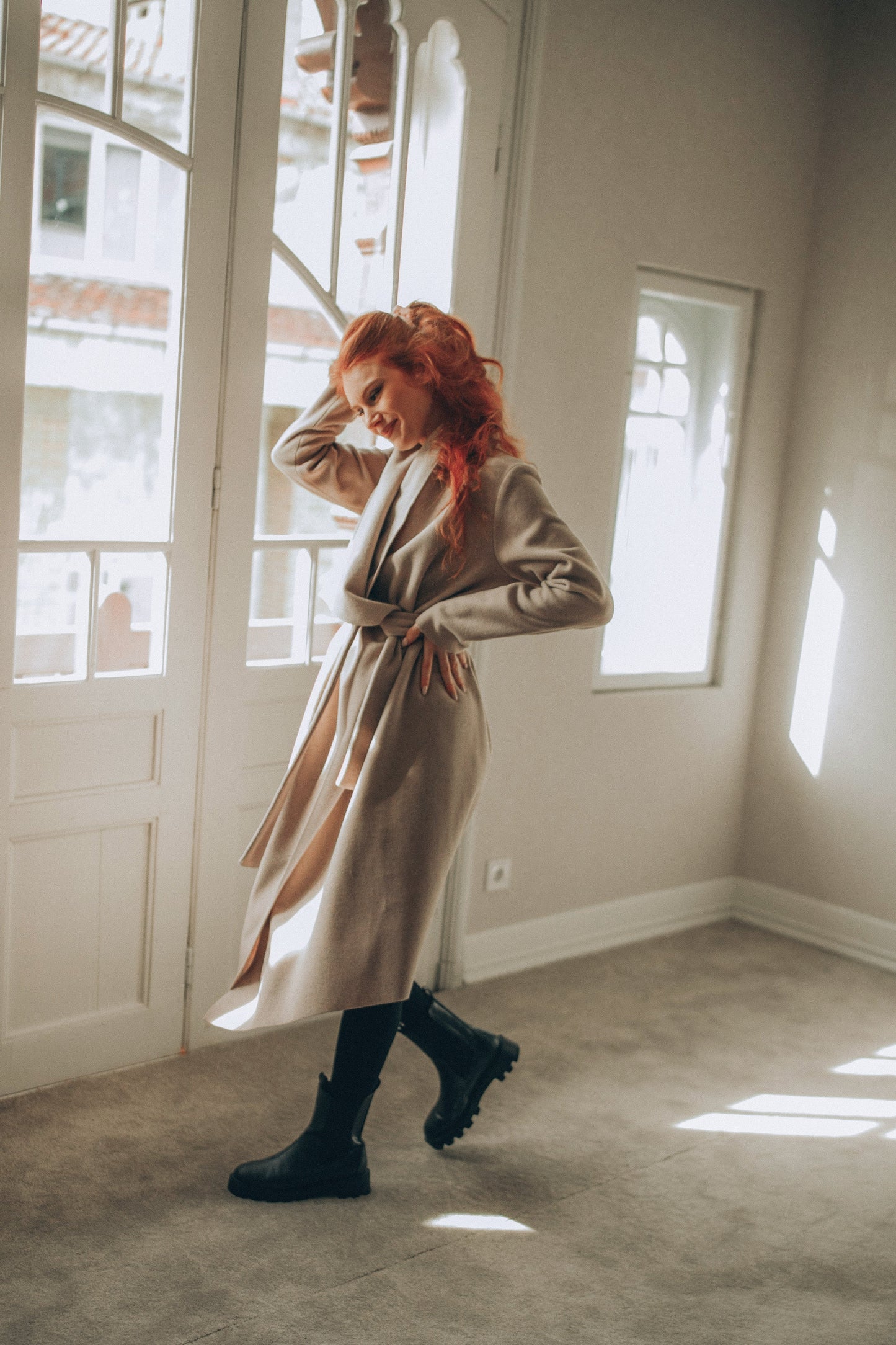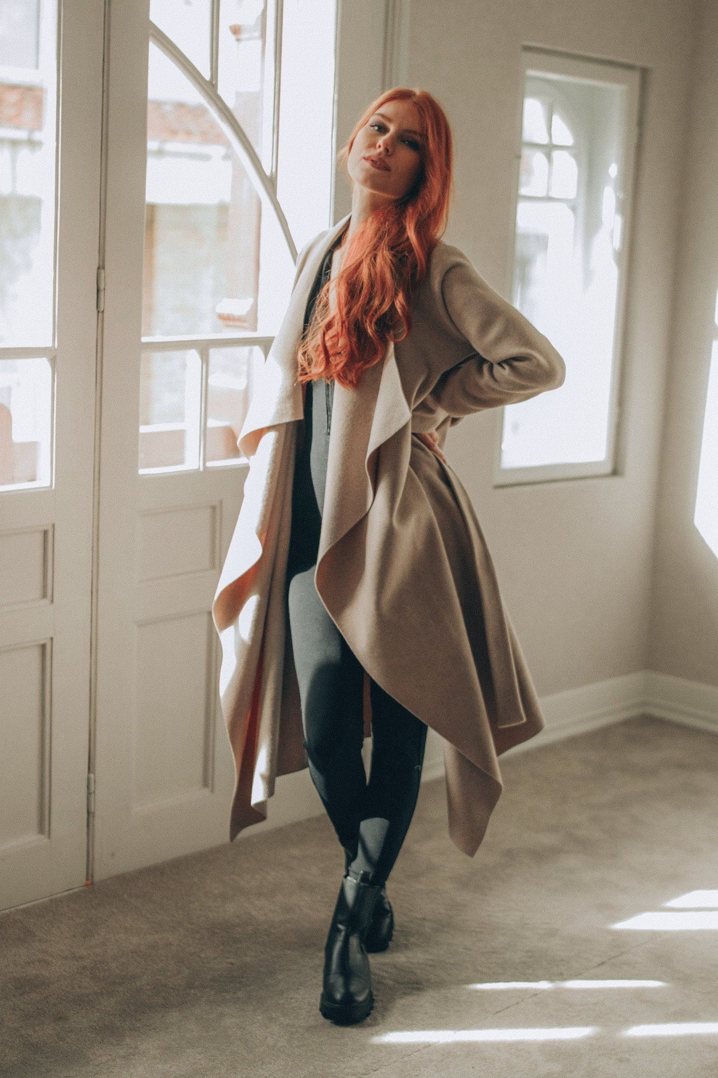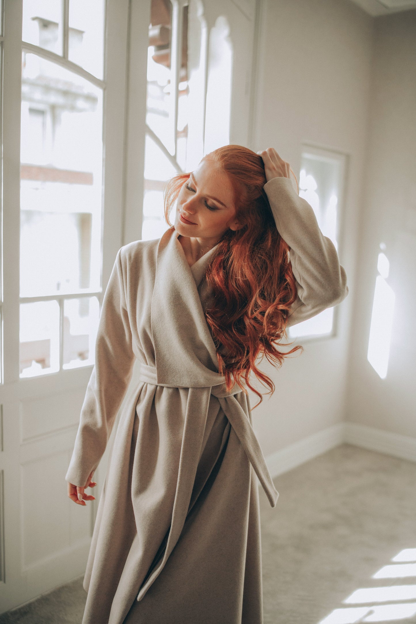 Experience the perfect blend of style and comfort with this powder beige wool cardigan coat, thoughtfully designed for women seeking warmth and elegance. This wool coat features a flowing asymmetrical wrap and a matching belt, making it an essential winter layer that complements both casual and dressy looks. This piece effortlessly elevates your wardrobe with its timeless charm.